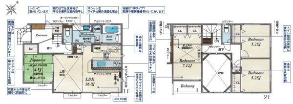 1階和室 4.5帖 2階洋室 7.1帖 2階洋室 5.2帖 2階洋室 5.2帖 |