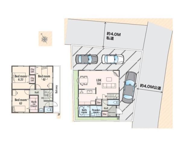 | 接道詳細 | 南東幅員4m /北東幅員4m |