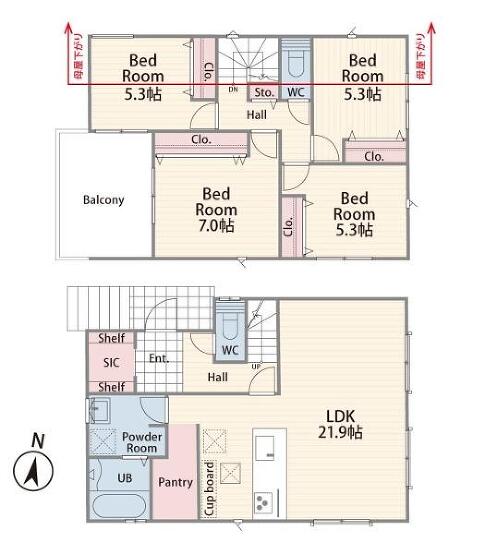 2階洋室 5.3帖 2階洋室 7帖 2階洋室 5.3帖 2階洋室 5.3帖 |