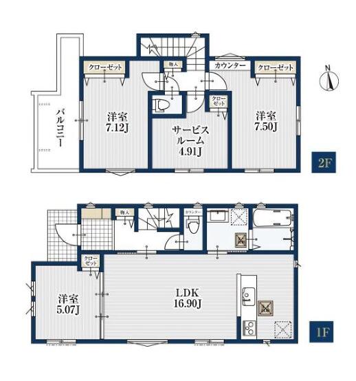 1階洋室 5帖 2階洋室 7.1帖 2階 4.9帖 2階洋室 7.5帖 |