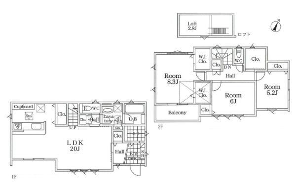 2階洋室 8.3帖 2階洋室 6帖 2階洋室 5.2帖 |