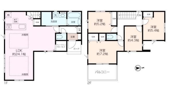 2階洋室 5.2帖 2階洋室 7.2帖 2階洋室 4.3帖 2階洋室 5.4帖 |