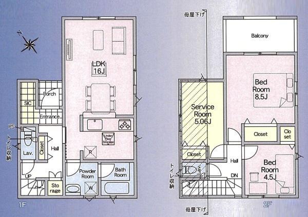 2階 5帖 2階洋室 4.5帖 2階洋室 8.5帖 |