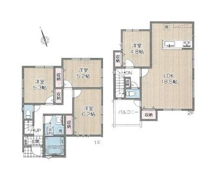 1階洋室 5.2帖 1階洋室 6.2帖 2階洋室 4.8帖 2階 18.5帖 |