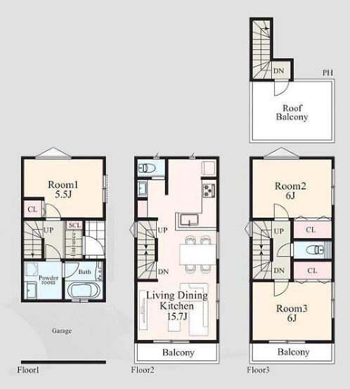2階 15.8帖 3階洋室 6帖 3階洋室 6帖 |