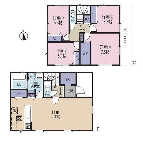 2階洋室 5.3帖 2階洋室 5.1帖 2階洋室 7.5帖 2階洋室 5.3帖 |