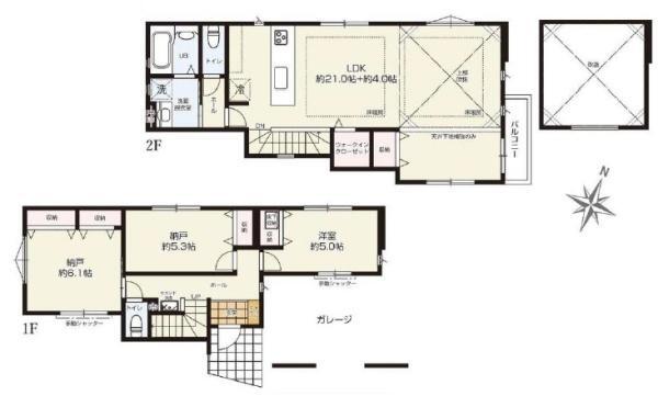 1階 5.3帖 1階洋室 5帖 2階 25帖 |