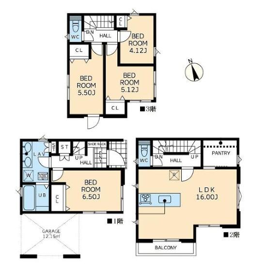全3棟(3号棟) 建物面積に車庫面積12.15平米含む