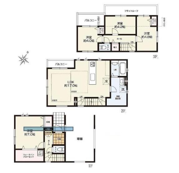 2階 17帖 3階洋室 4帖 3階洋室 4.2帖 3階洋室 4.8帖 |
