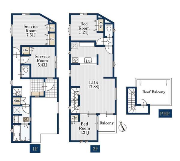 1階 5.4帖 2階洋室 5.2帖 2階 17.8帖 2階洋室 4.2帖 |