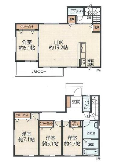 1階洋室 5.1帖 1階洋室 4.7帖 2階洋室 5.1帖 2階 19.2帖 |