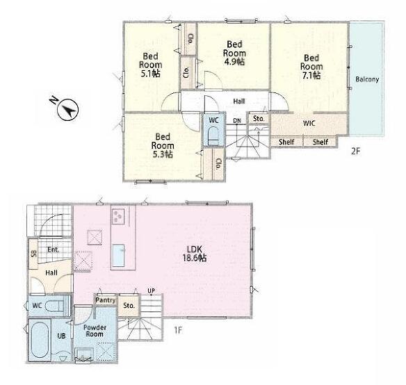 2階洋室 5.1帖 2階洋室 5.3帖 2階洋室 4.9帖 2階洋室 7.1帖 |