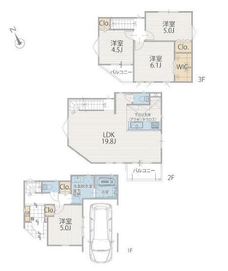 2階 19.8帖 3階洋室 4.5帖 3階洋室 6.1帖 3階洋室 5帖 |