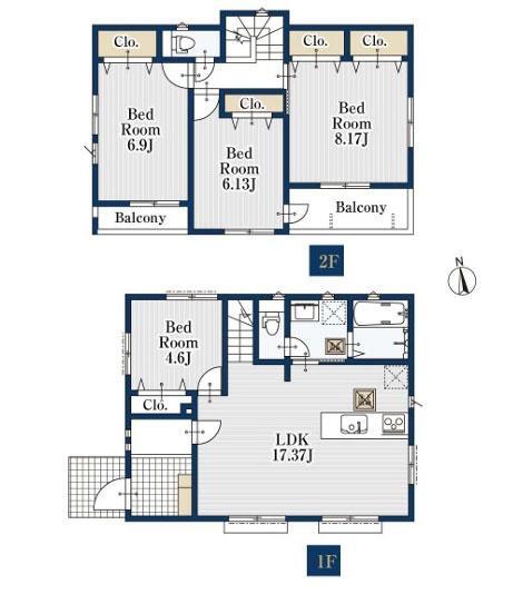 1階洋室 4.6帖 2階洋室 6.9帖 2階洋室 6.1帖 2階洋室 8.1帖 |