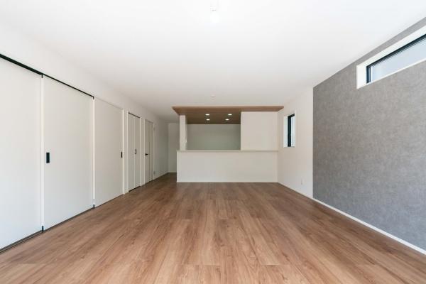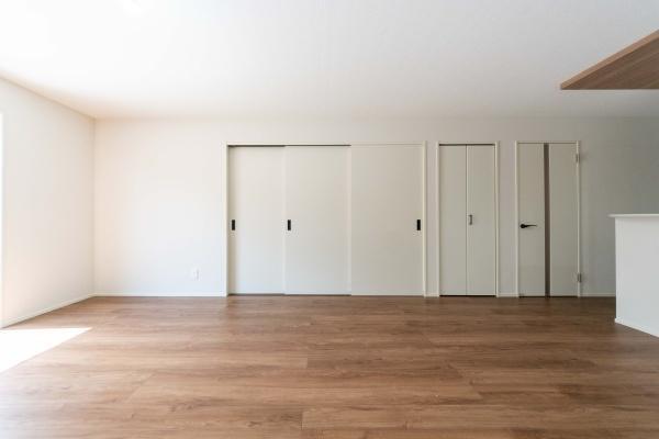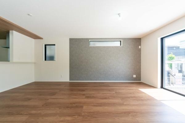 家族がゆったり過ごせる広々リビング。全居室南西向きで陽当たり良好です。