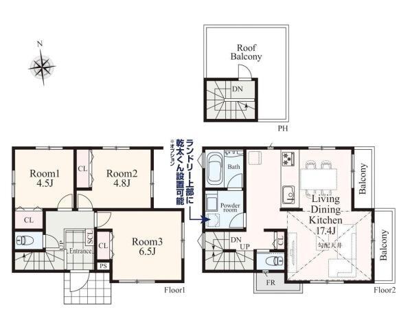 1階洋室 6.5帖 1階洋室 4.8帖 2階 17.4帖 |