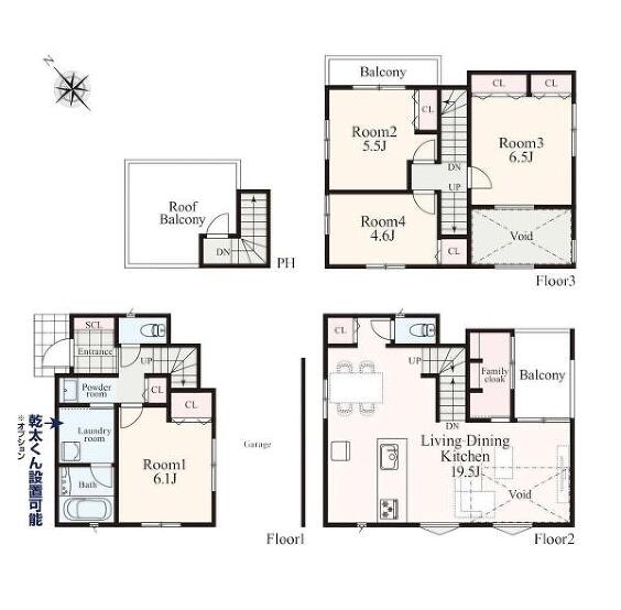2階 19.5帖 3階洋室 5.5帖 3階洋室 4.6帖 3階洋室 6.5帖 |