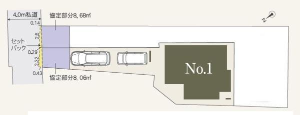 カースペース2台分有(車種による) 路地状部分あり 協定部分8.06平米含む