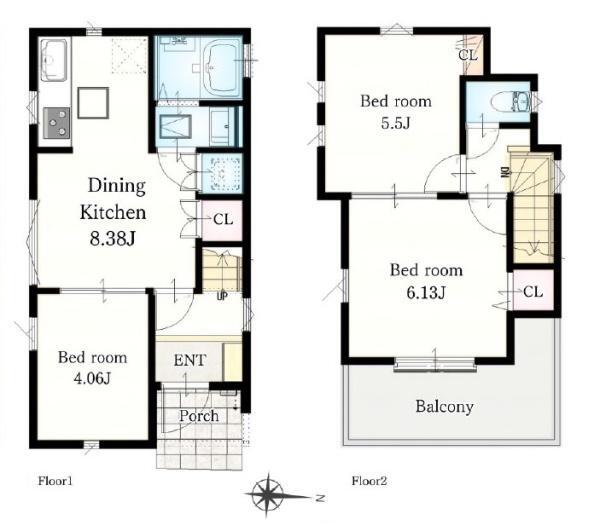 1階洋室 4帖 2階洋室 5.5帖 2階洋室 6.1帖 |