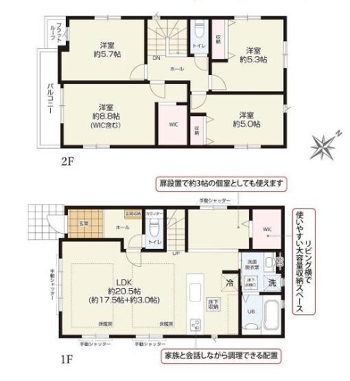 2階洋室 5.7帖 2階洋室 8.8帖 2階洋室 5帖 2階洋室 5.3帖 |