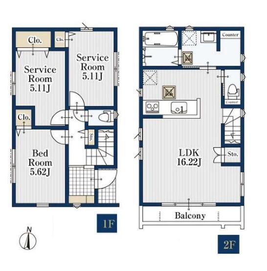 1階洋室 5.6帖 1階 5.1帖 2階 16.2帖 |