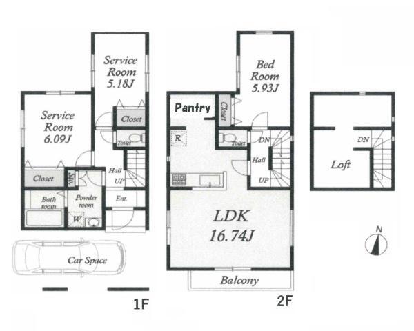 1階 5.1帖 2階 16.7帖 2階洋室 5.9帖 |