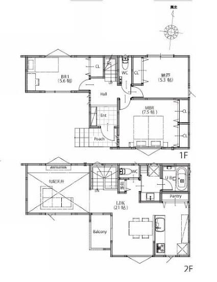 プライバシーが確保できる2階リビングプラン。居室に使用可能な納戸あり。全居室収納付きでパントリーもあり収納豊富。