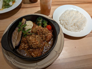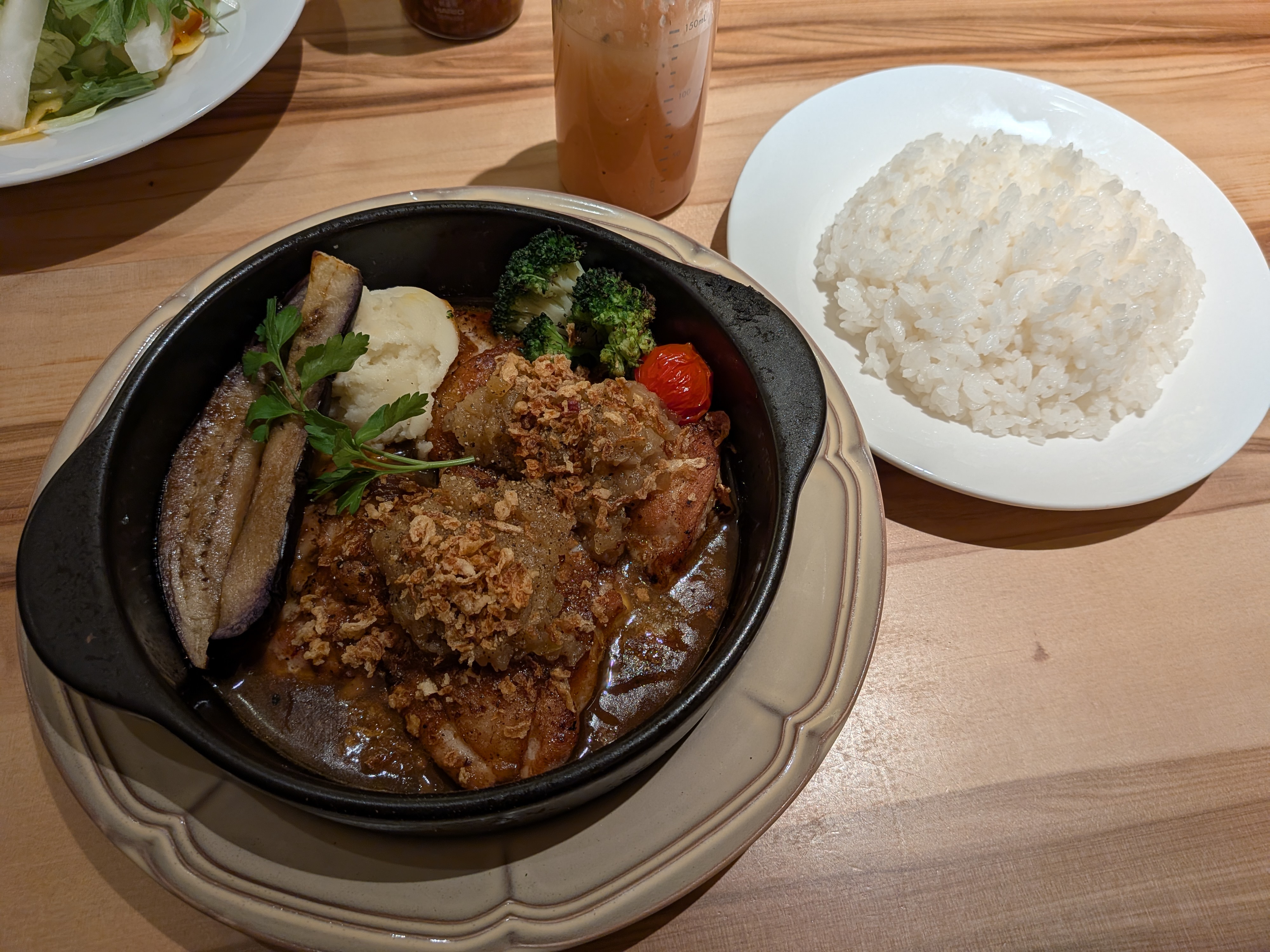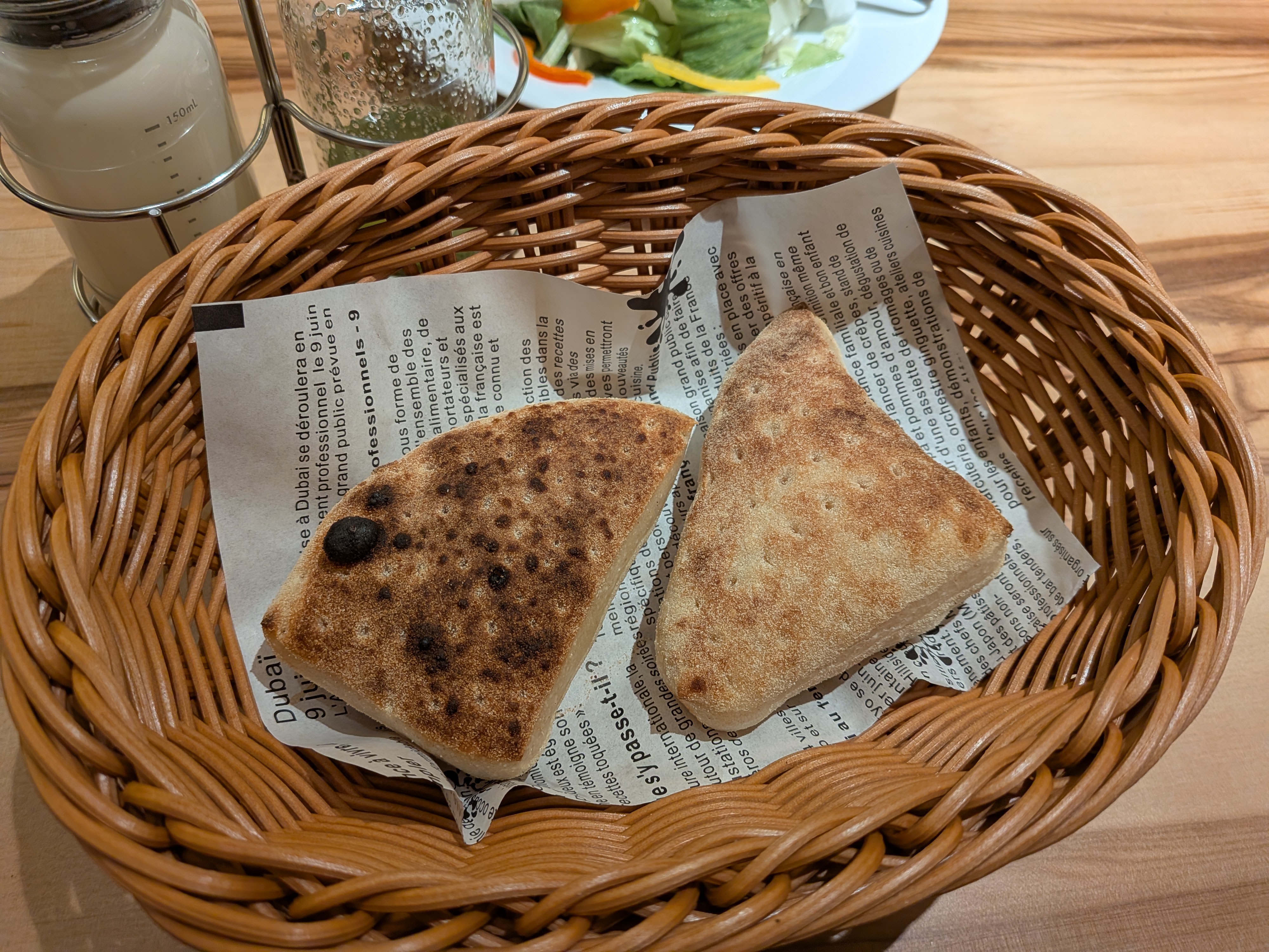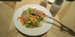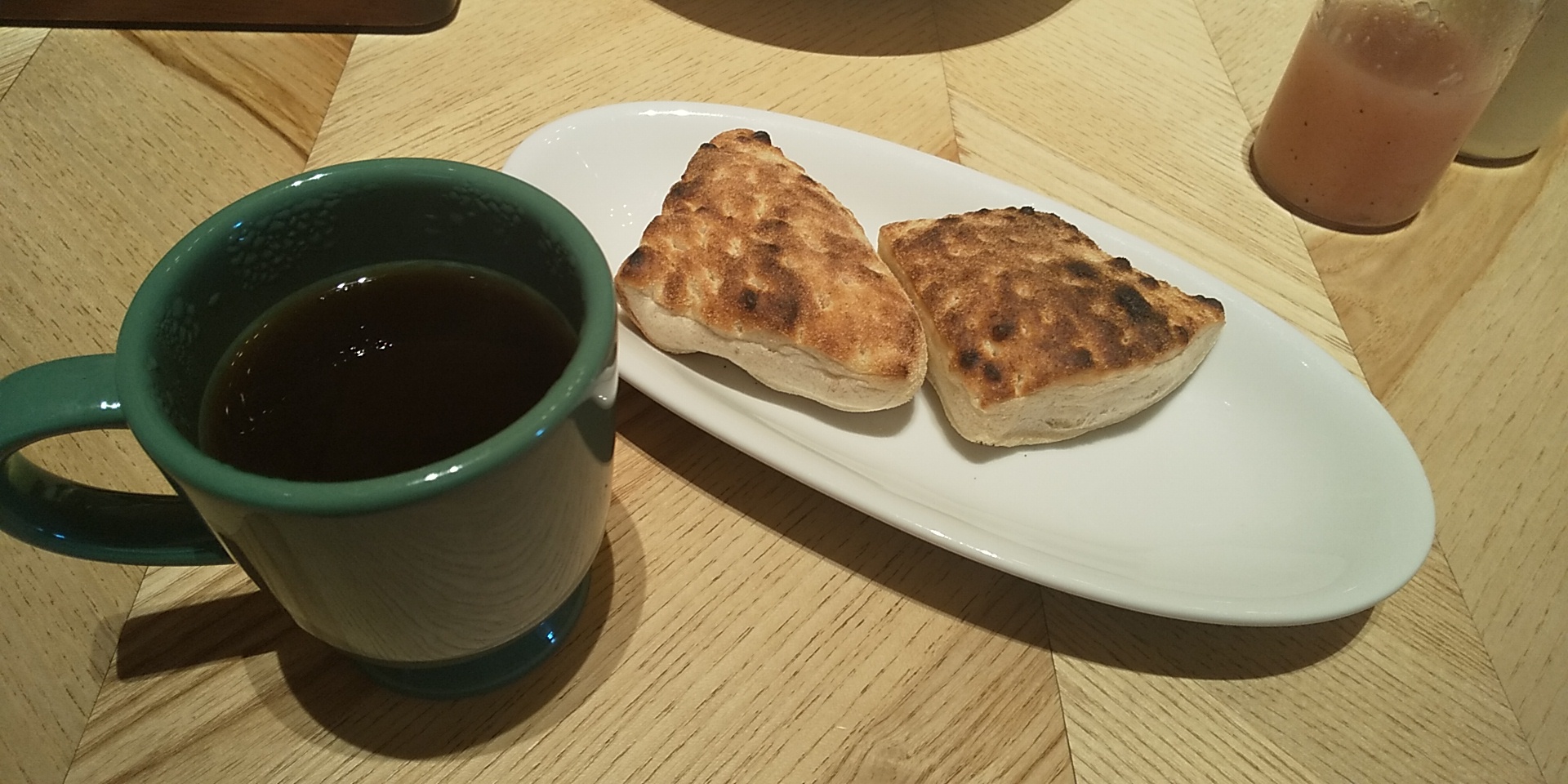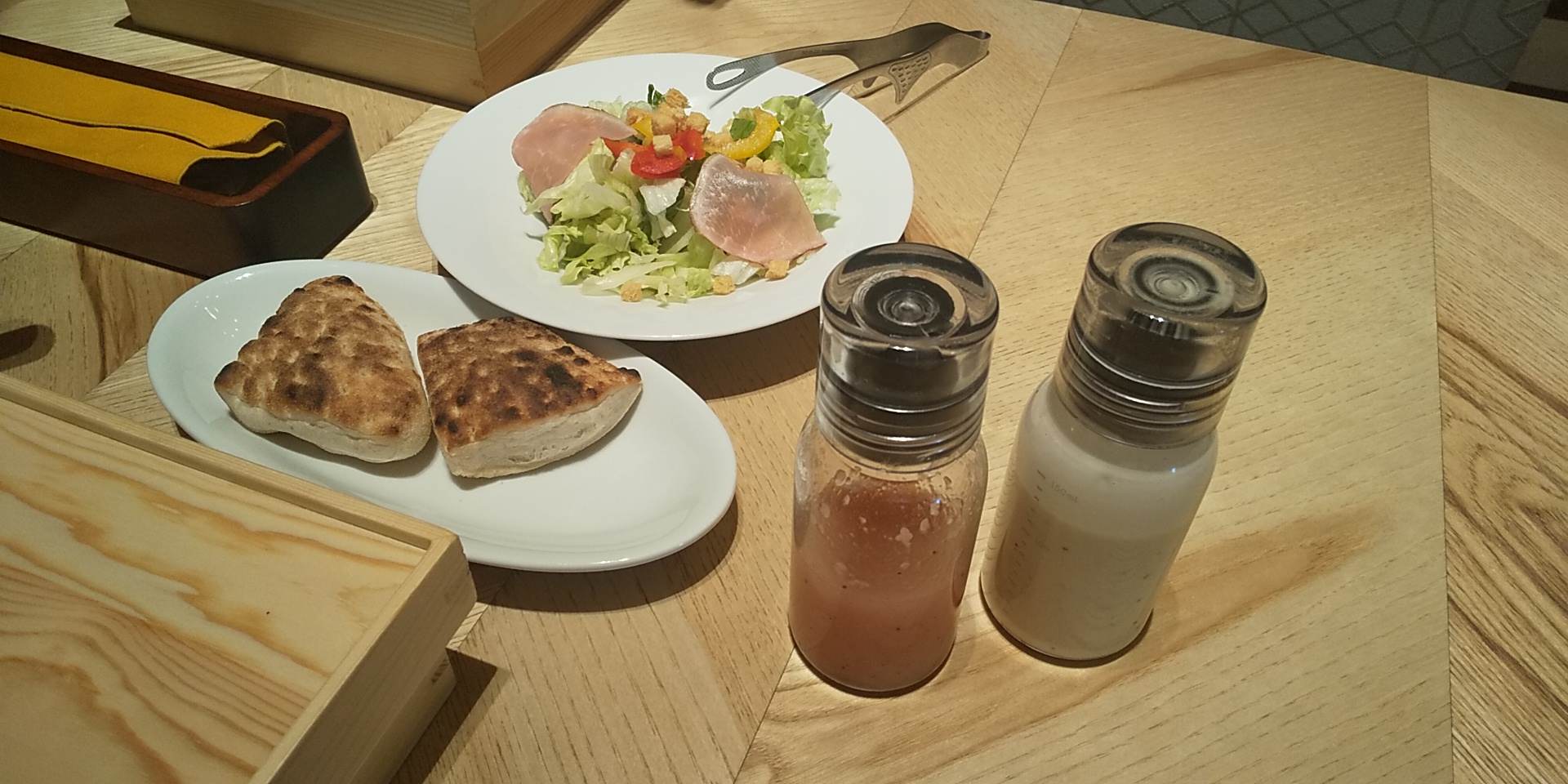 「ジューシーサラダ」と「焼きたてフォカッチャ」、スープが付いているのです。